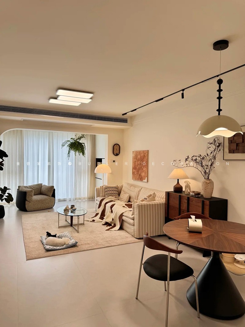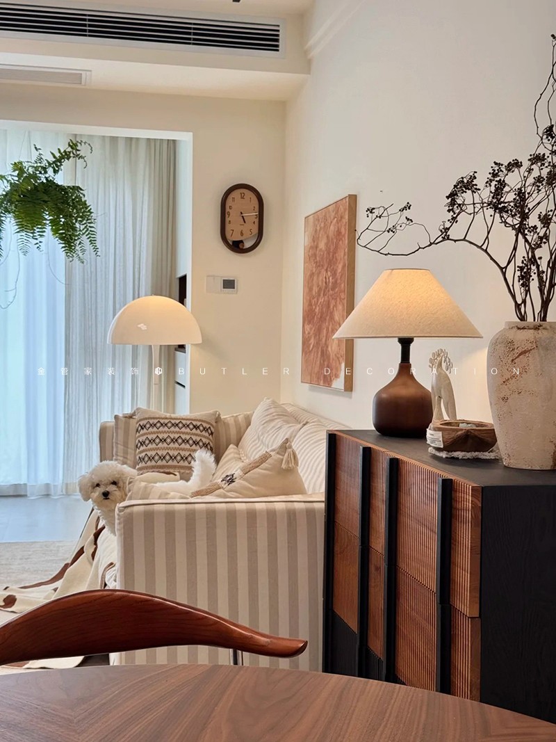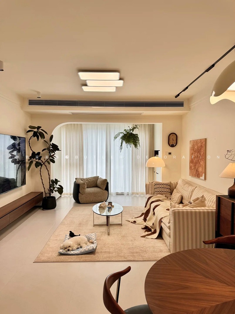 奶油風(fēng)裝修 | 暖調(diào)米色中的布藝木質(zhì)與綠植詩(shī)意組合